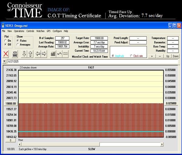 Timing: Timed to precision on a state-of-the-art computerized system. It is running strong and true, keeping time essentially on par with a new Omega in our testing recording position.