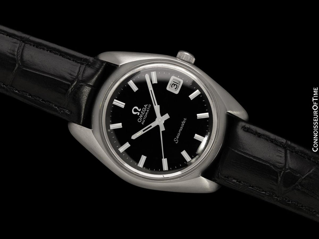 Today's offering showcases this classic and meticulously restored c. 1971 Omega Seamaster. Its case has a wonderfully distinctive case with large double curved lugs that flow like wings juxtaposed against a perfectly flat brushed bezel.