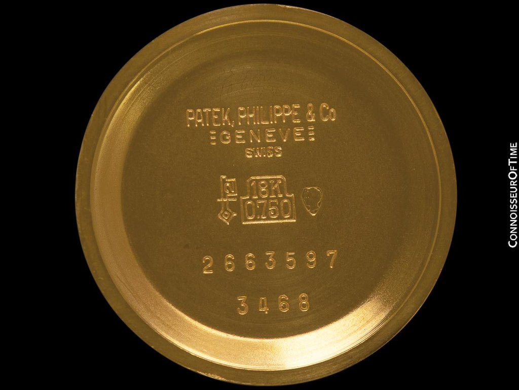 Case markings (inside): Patek Philippe & Co, Geneve Swiss, 3468, 2,663,597, 18K (0.750)