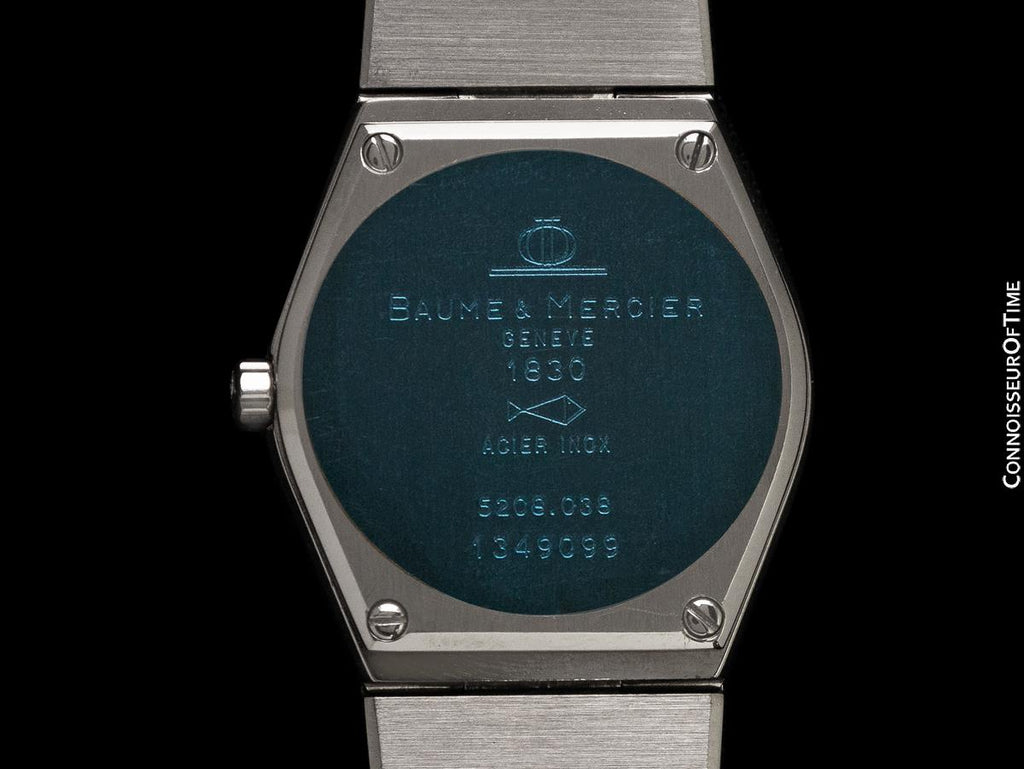 Case markings (outside): Baume & Mercier, Geneve, 1830, Acier Inox with reference 5209.038, and serial 1,349,099