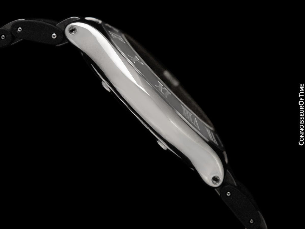Band: Signed Cartier rubber and stainless steel with steel Cartier deployment buckle, fits a wrist up to approx. 8 inches, adjustable, excellent condition