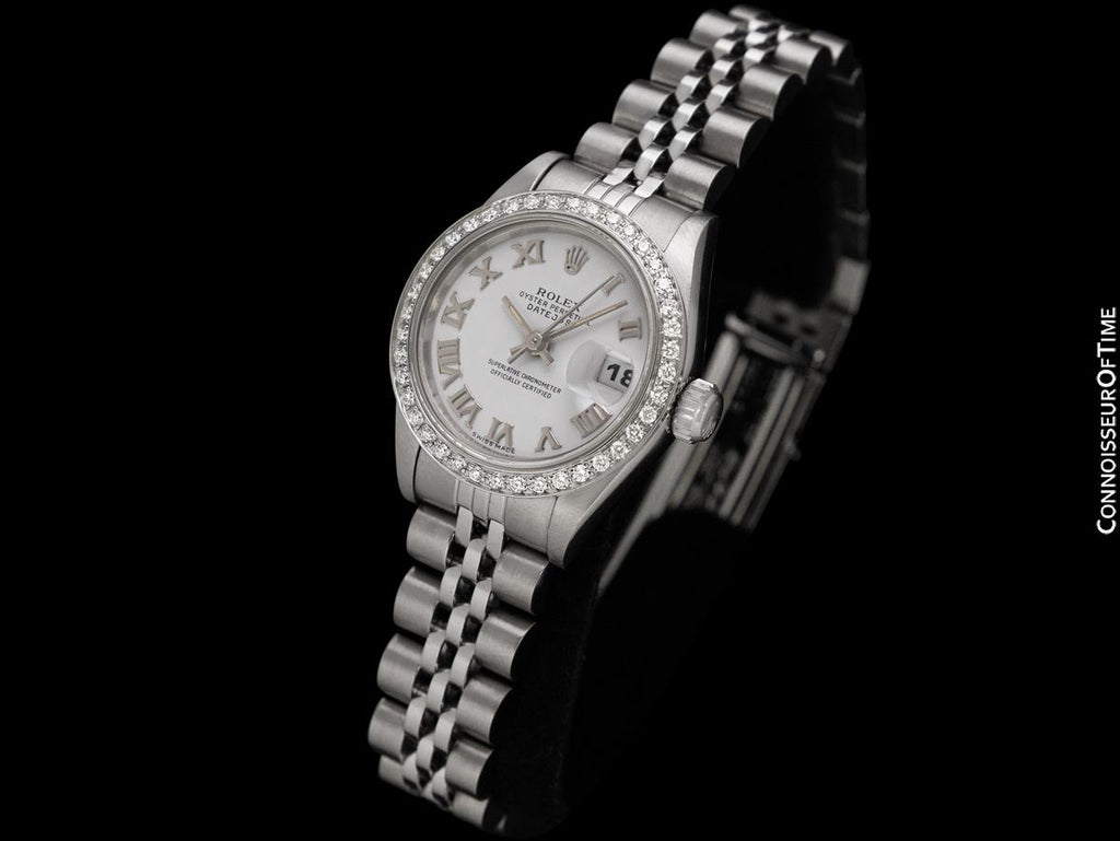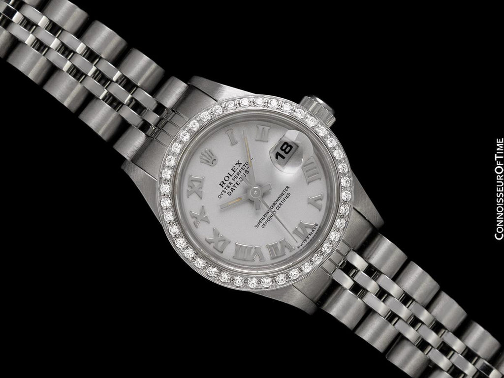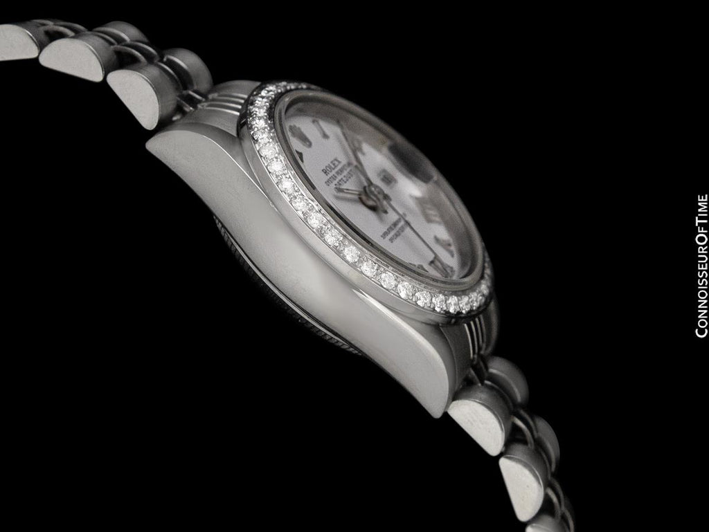 Today's offering proudly showcases this classic Connoisseur of Time Rolex Oyster Perpetual Lady Datejust encased in steel with diamond bezel and Rolex Jubilee bracelet with original papers.