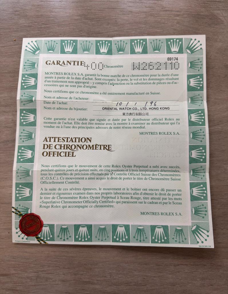 Box/Papers: BOX - Connoisseur of Time watch presentation box; PAPERS - Original Rolex certificate; Custom printed Connoisseur of Time Certificate of Authenticity
