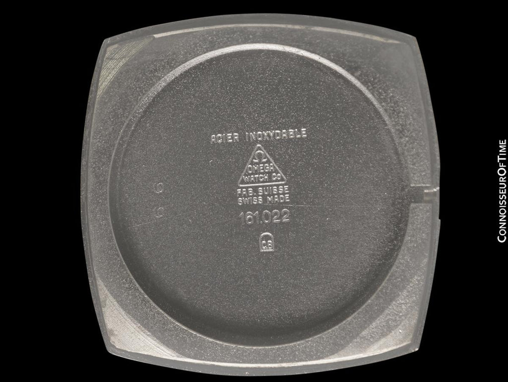 Case markings (inside): Omega Watch Co., Swiss Made, Acier Inoxydable, 161.022