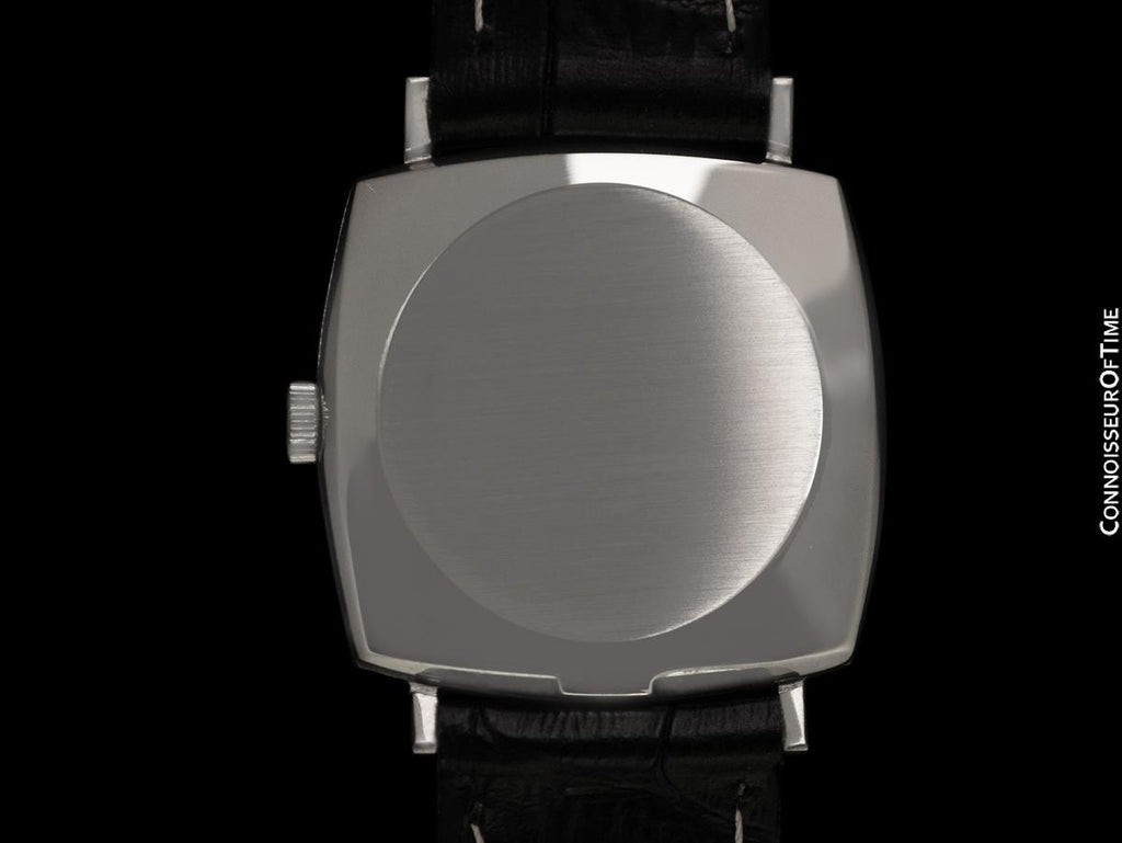 Although non-round watches are most often fitted with handwound movements, this model can have an automatic because it is powered by a caliber 711 movement, the thinnest automatic movement the company has ever made.