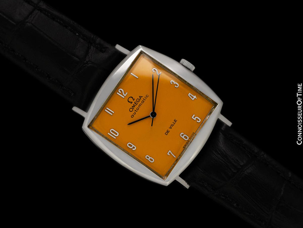 Living up to its name as one of the sophisticated "De Ville" models, it features a retro somewhat "TV style" case, striking dial, and very fine ultra-thin automatic Omega movement.