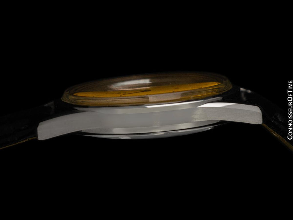 Its original Omega dial has been meticulously custom refinished in a tone that resembles Giallo Modena - the printing could pass as Omega factory done to the naked eye.
