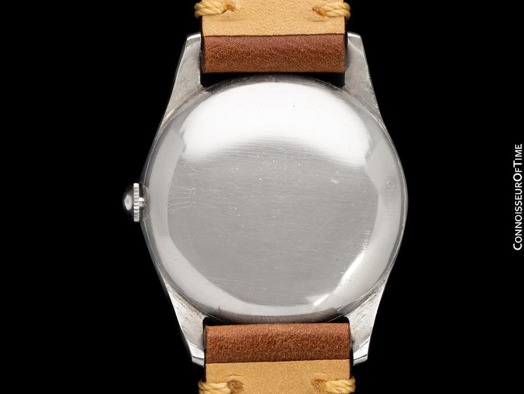 Dial: Silver, signed Rolex, applied gold Roman and dot indexes, inner minute / seconds track with 1/5 increments, previously nicely-restored in vintage times. Please inquire if you would like a fresh restoration.