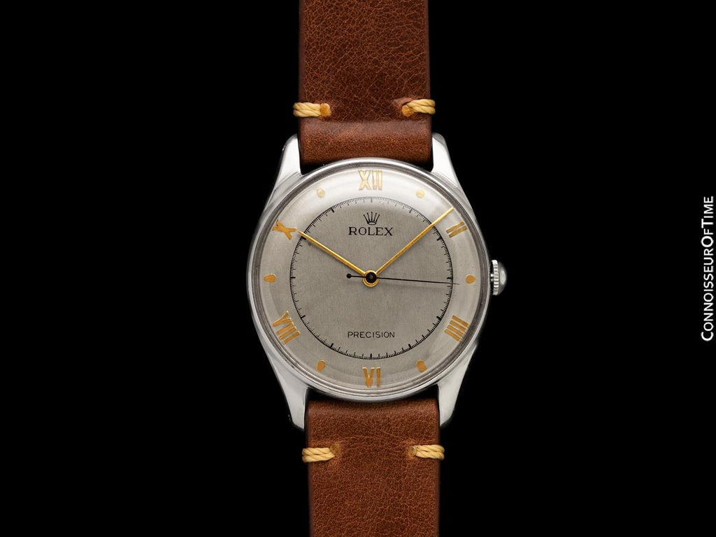 In the 1930's through the 50's, in the midst of their high output of utilitarian sports watches, Rolex also made much more elegant dress watches. These fine wristwatches often combine a superior hand-wound mechanism with beautiful aesthetics.