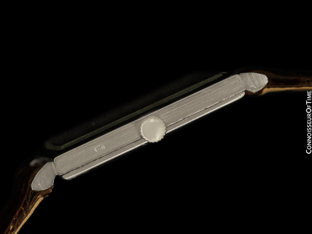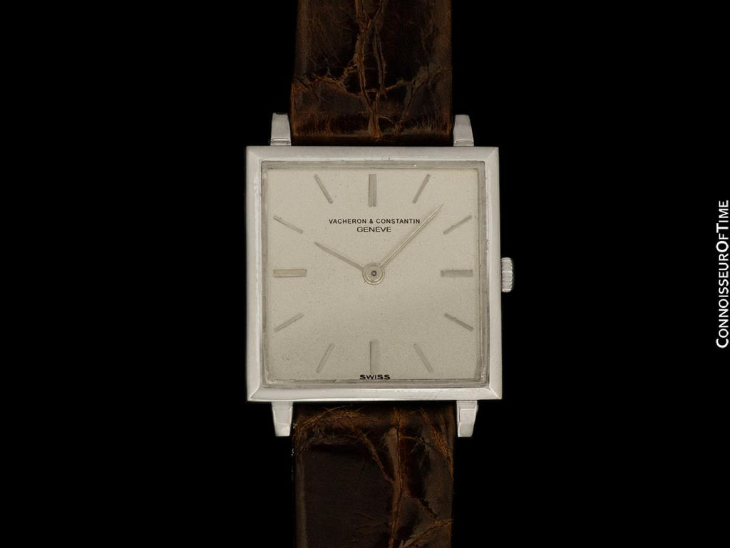 Epitomizing the essence of "'the square classic watch" remembered today, watches like this made by Patek, Vacheron & AP feature a manually wound movement, thin gold cases, understated dial, slender hands, and simple baton markers. As one writer aptly stated, "The extra-slim watch, whose style embraces only the strict essentials, has continued to seduce for its elegance and discretion."