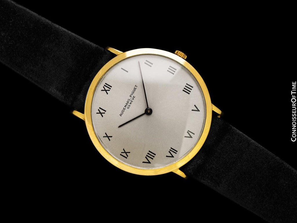 Featuring an elegant case with thin bezel and a classic dial (face), it possesses timeless elegance and class. And equipped with an extremely fine, original Audemars Piguet movement, it showcases top tier Swiss watchmaking. It has the same look as the ultra thin dress watches but without a caliber 2003 movement - this one is the slightly thicker and higher grade caliber 2001.
