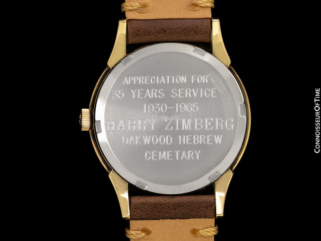 It was given in appreciation for 35 years of service, and it appears to have been worn little before being safely stored away for the last six decades. It presents as nearly new-old-stock.