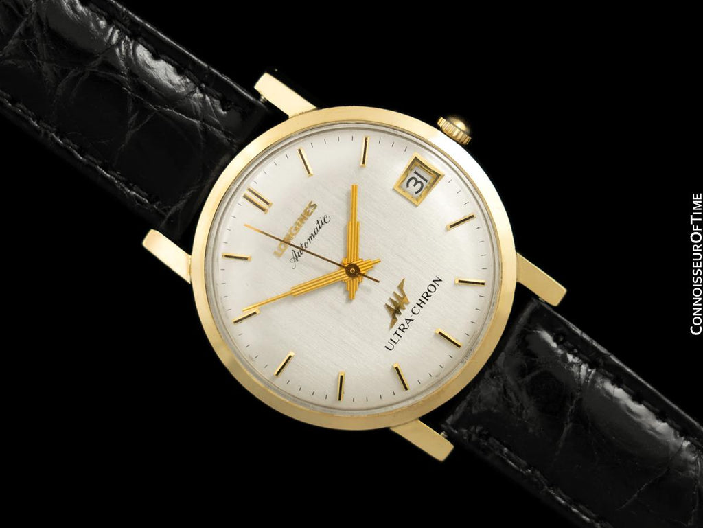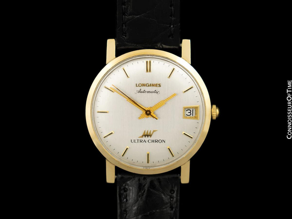 In 1967, to commemorate the company's 100th anniversary, Longines released the Ultra-Chron, a new line of extremely accurate wristwatches. Depending on the watch, the balance system ticked away at a speedy 28,800 or a blazing 36,000 beat per hour pace, giving it the ability to run incredibly accurately.