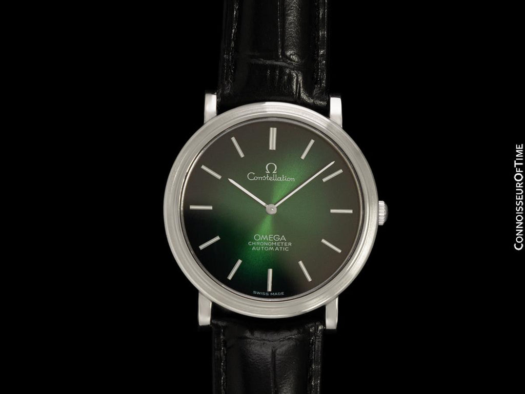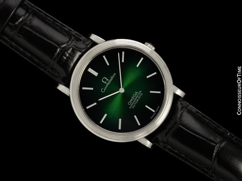 Today's offering showcases this classically styled Constellation chronometer. It features a timeless and elegant case and striking emerald green vignette color dial.