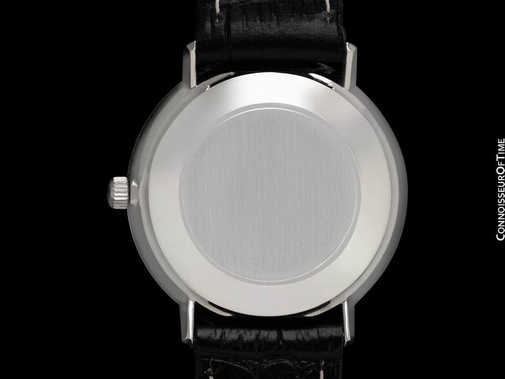 Movement type: Caliber 565, signed Omega, manually wound, finished in copper-beryllium, 24 jewels, straight-line lever escapement, monometallic balance, shock absorber, self-compensating flat balance spring, micrometer regulator for precision adjustment