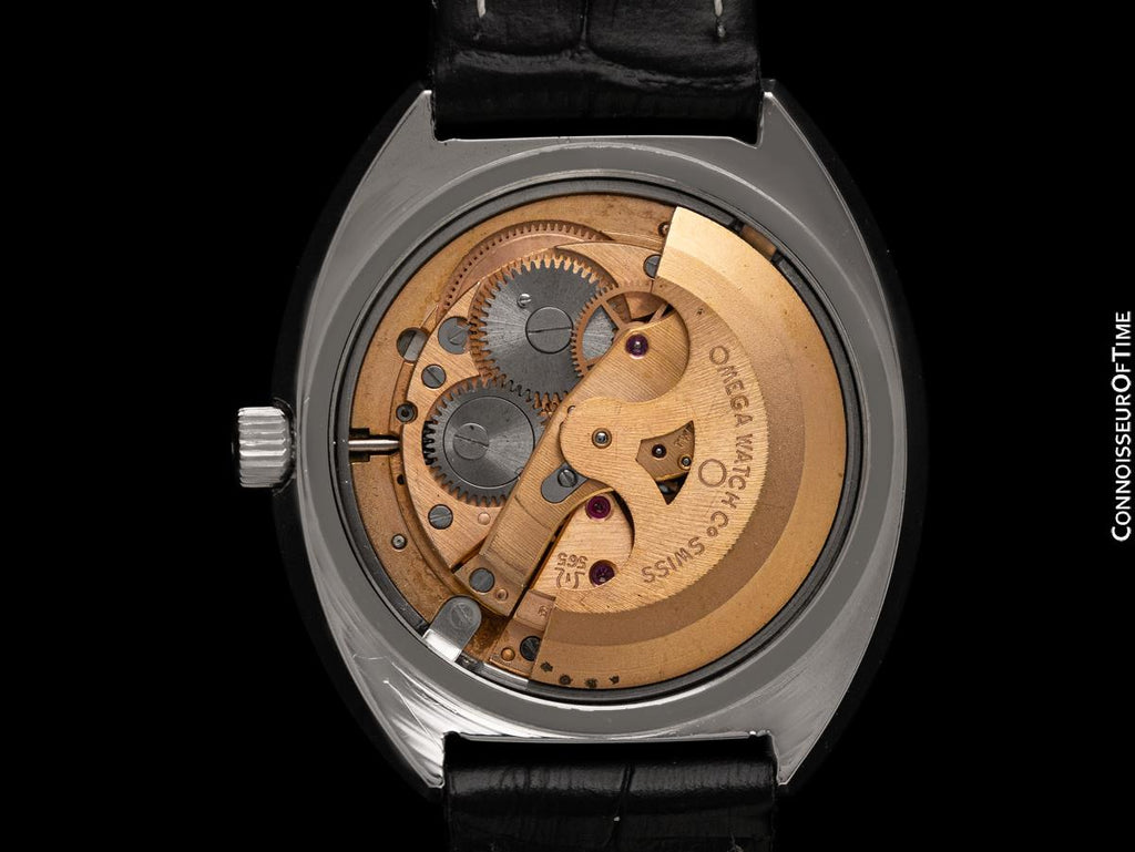 Movement type: Omega Caliber 565, 24 jewels (seven more than found in many other vintage Omega movements) copper colored, shock protected, bi-direction automatic, micrometer regulator for precision timing