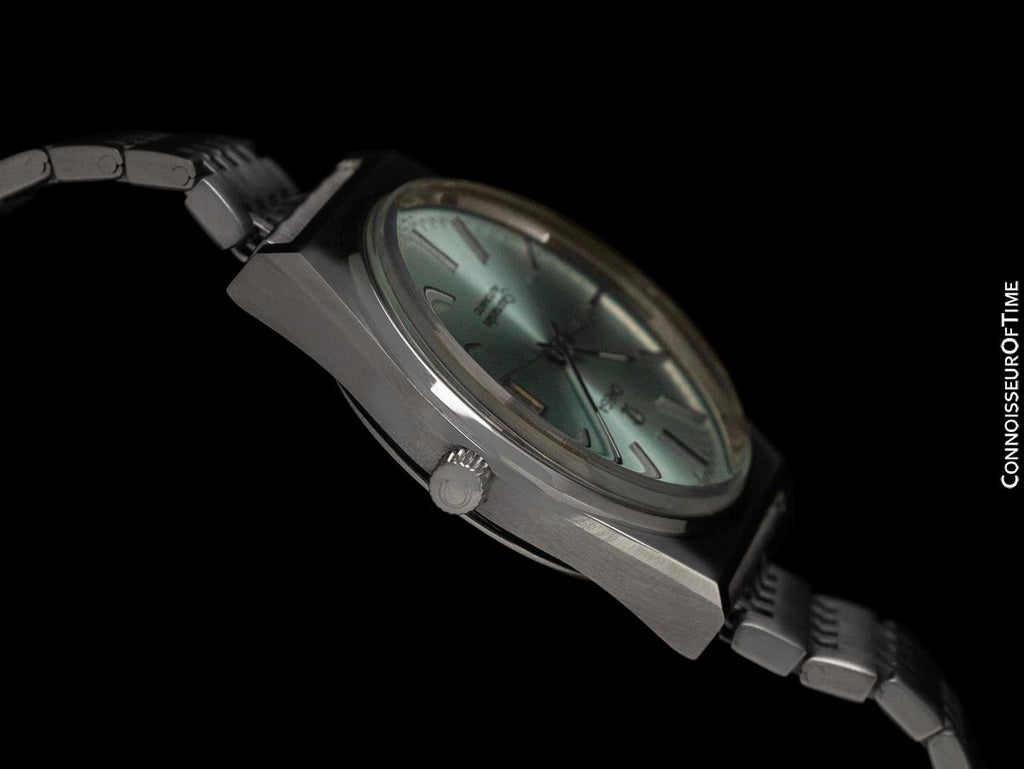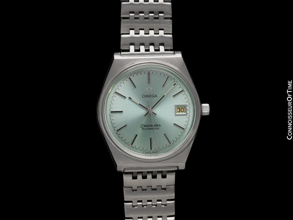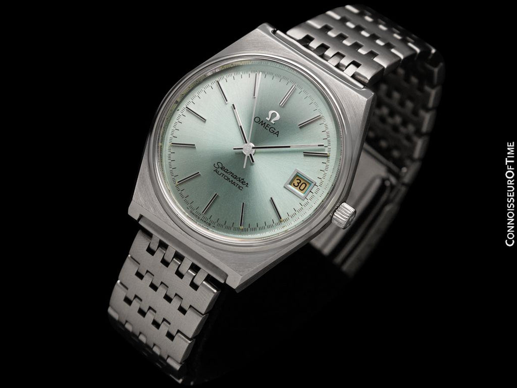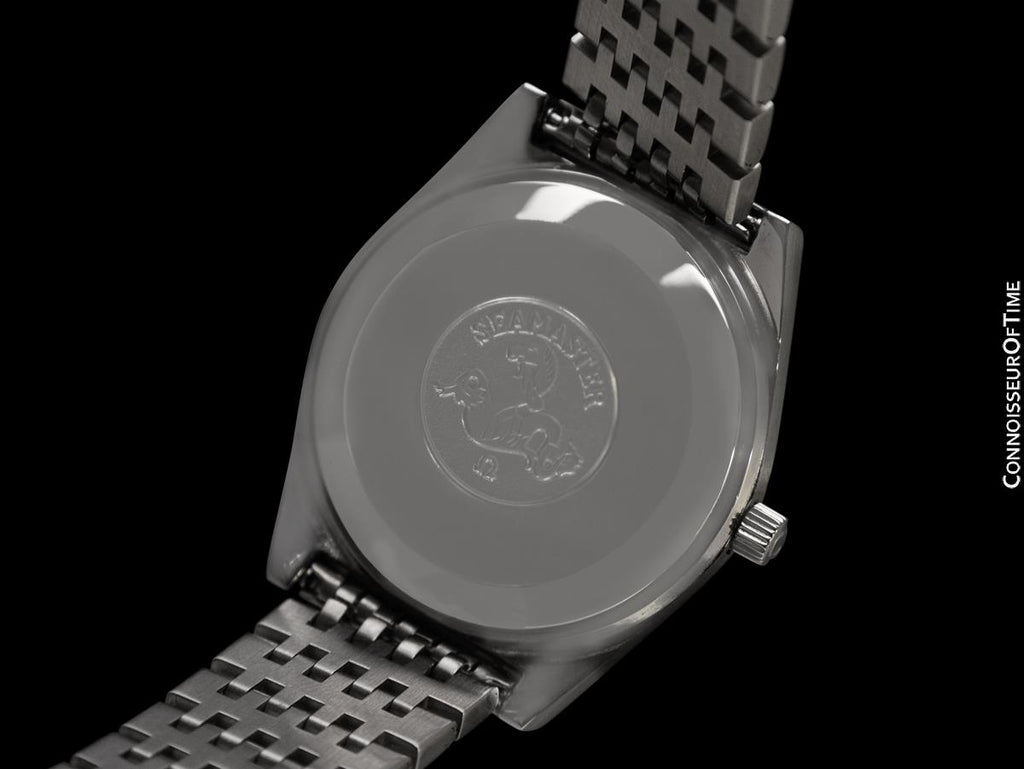 It is an uncommon later model vintage Seamaster with an uncommon original bracelet style. Built at a time when the quartz revolution was taking hold and Omega was cutting costs, this watch with automatic Cal. 1010 movement with quick-setting date carried on the mechanical tradition of the Seamaster.
