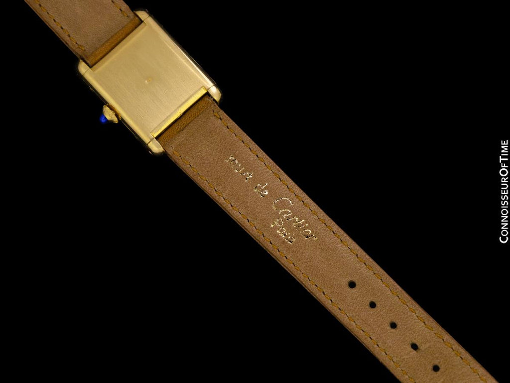 Band: Original signed Must de Cartier leather strap with gold-plated Cartier buckle, new-old-stock