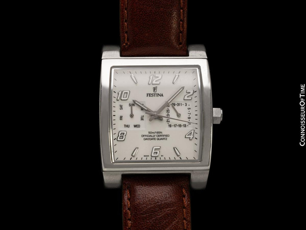 Dial: Silver with applied luminous Arabic numerals, baton indices, subsidiary day and date indications, luminous dauphine hands, signed Festina